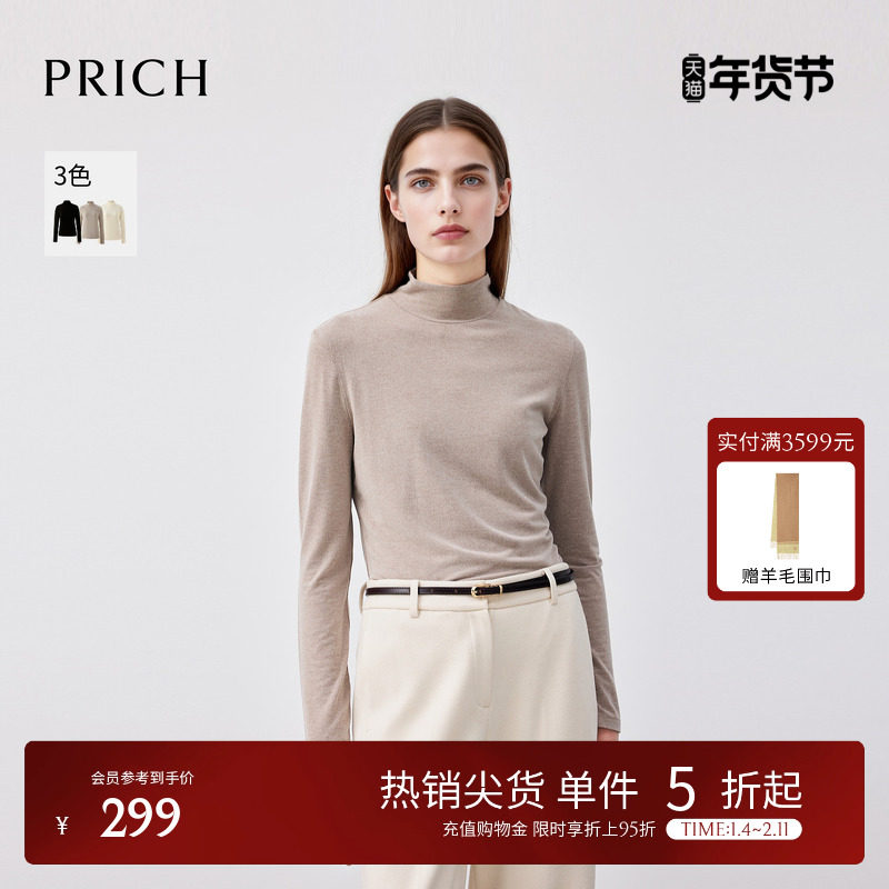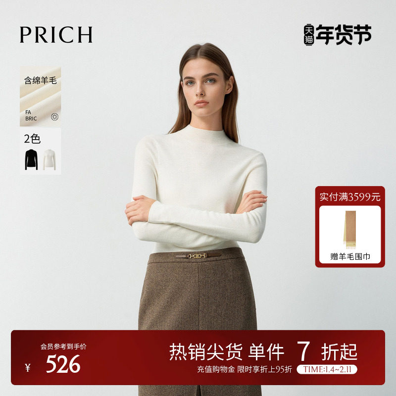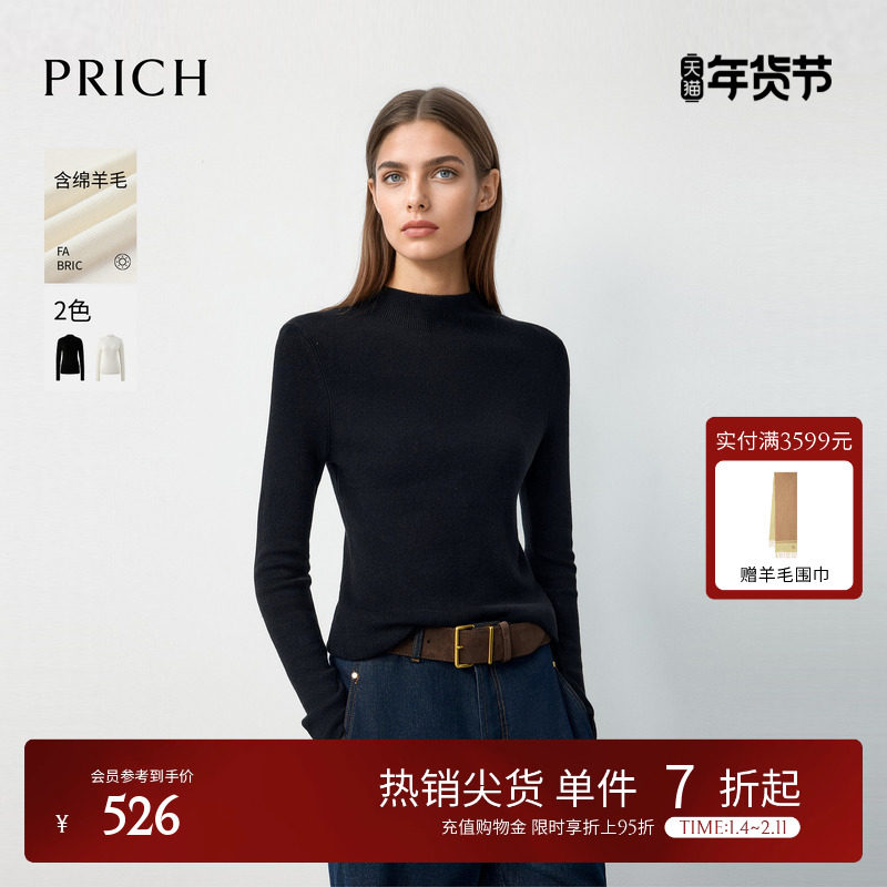 【可机洗羊毛】PRICH知性半高领针织衫2025冬季新品修身打底衫女