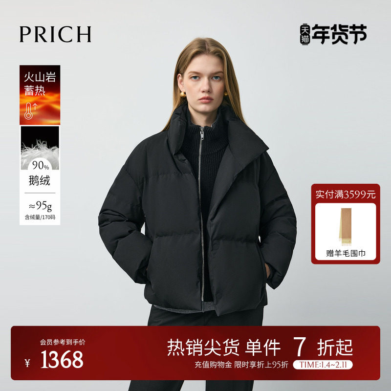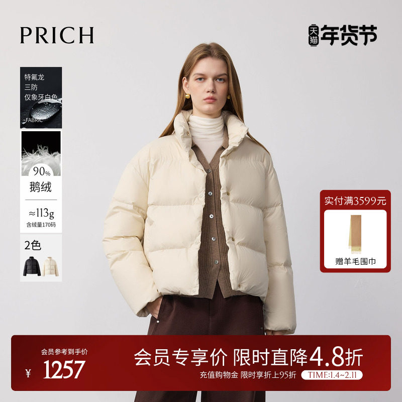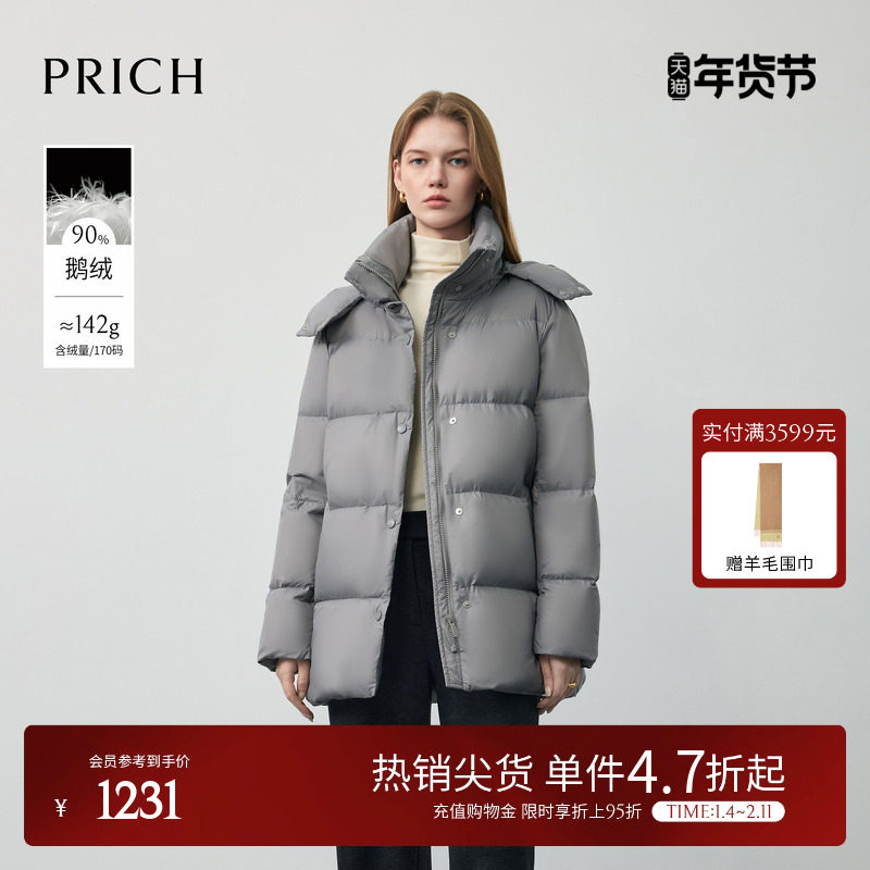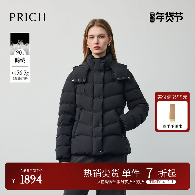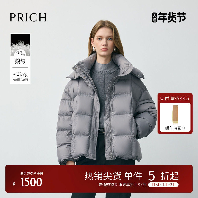 【90%鹅绒】PRICH时尚可拆卸帽子立领保暖云朵羽绒服2025冬新品女