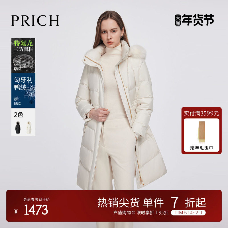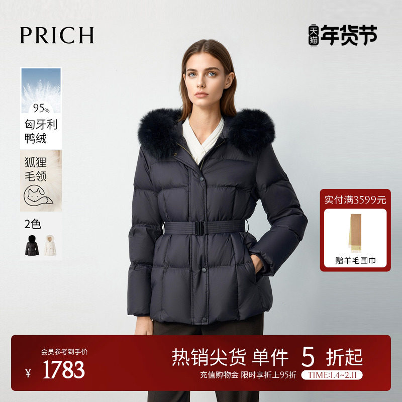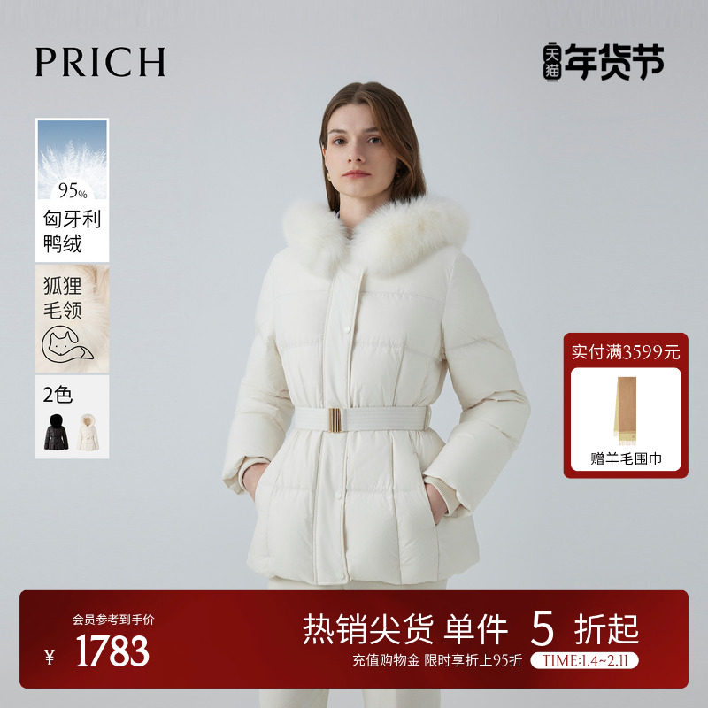 【匈牙利鸭绒】PRICH时尚狐狸毛领轻量收腰羽绒服2025冬季新款女