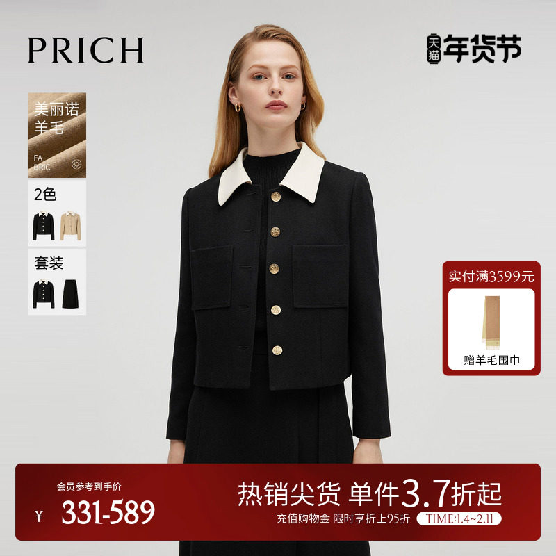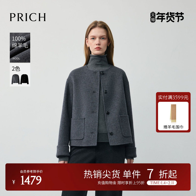 【100%绵羊毛】PRICH知性双面毛呢大衣2025冬季新款短款外套女