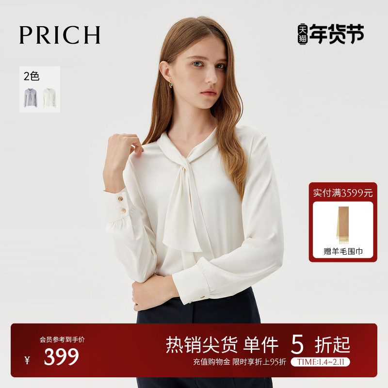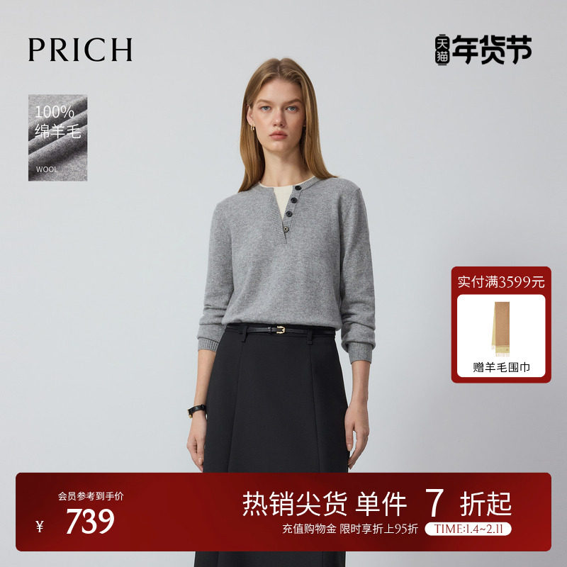 【绵羊毛】PRICH时尚格雷系假两件针织衫2025冬季新款气质毛衣女
