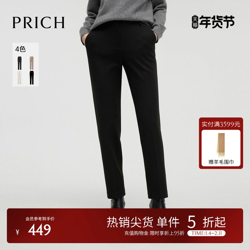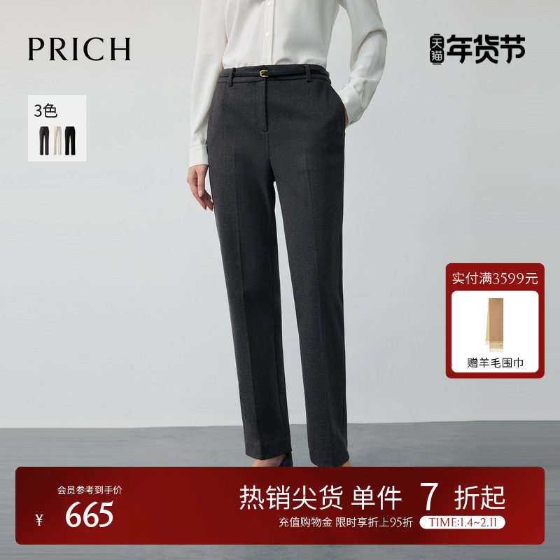 PRICH气质简约修身微喇垂感西装裤2025年冬季新品通勤高腰西裤女