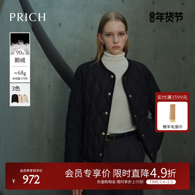 【90%鹅绒】PRICH时尚气质菱格纹羽绒服冬季保暖显瘦外套女