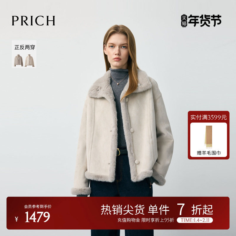 PRICH时尚复古双面穿软糯毛绒感外套2025冬季新款短款皮草上衣女