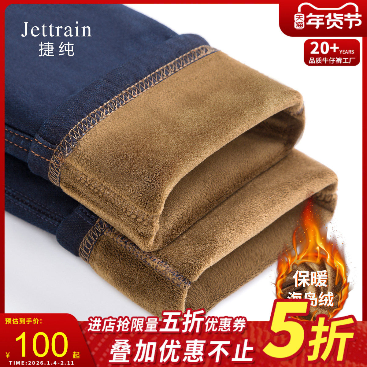 - 加绒加厚牛仔裤女直筒