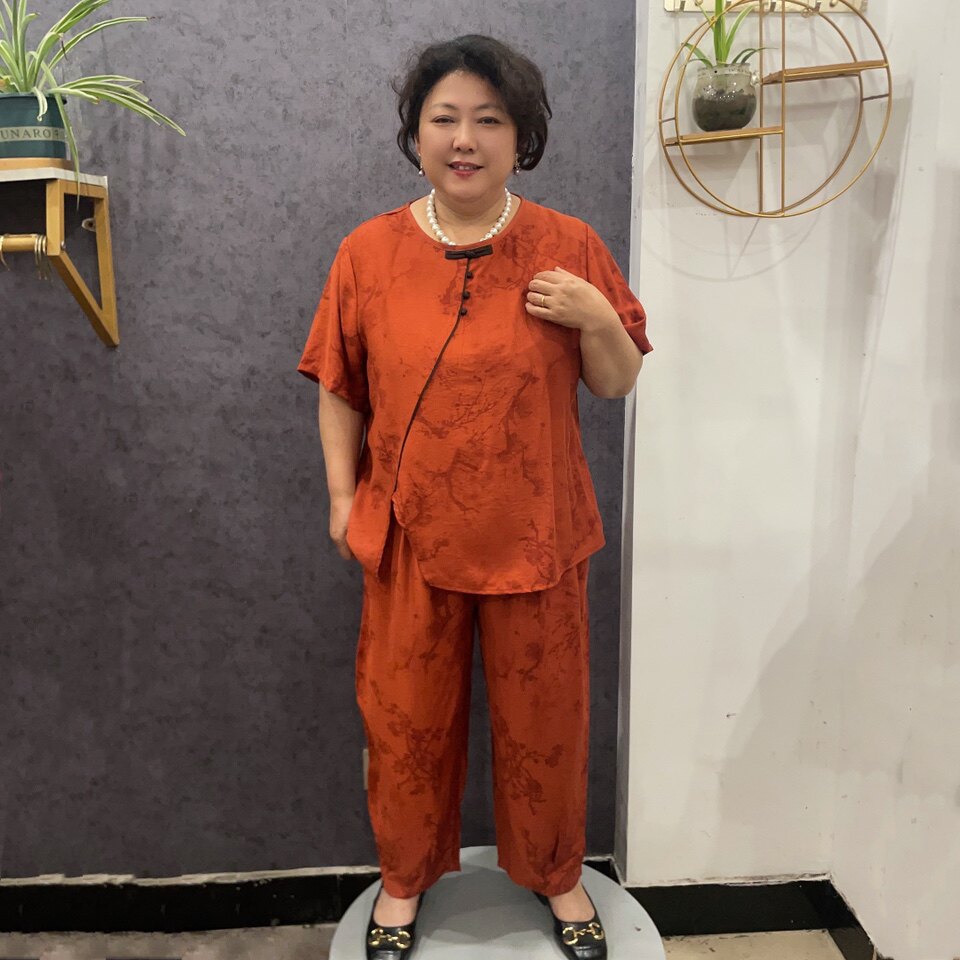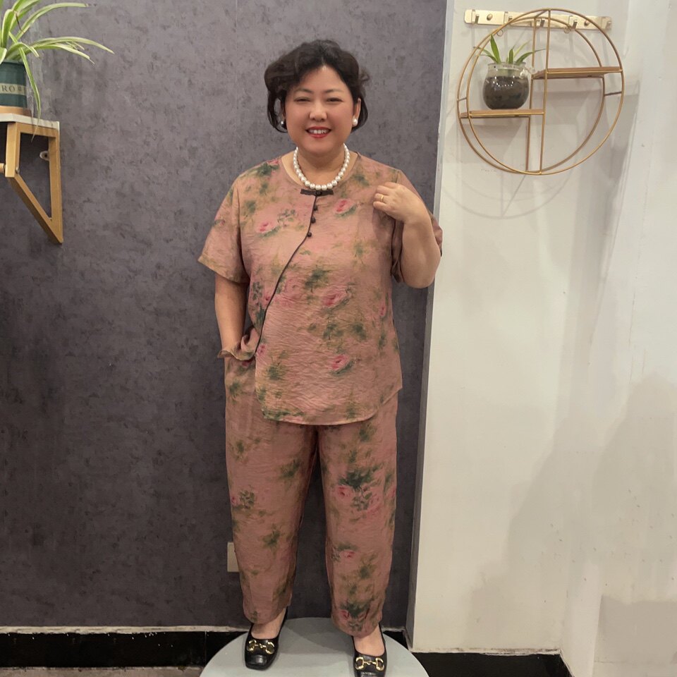加大版国风棉麻套装气质妈妈装宽松两件套女夏季宽松上衣裤中老年