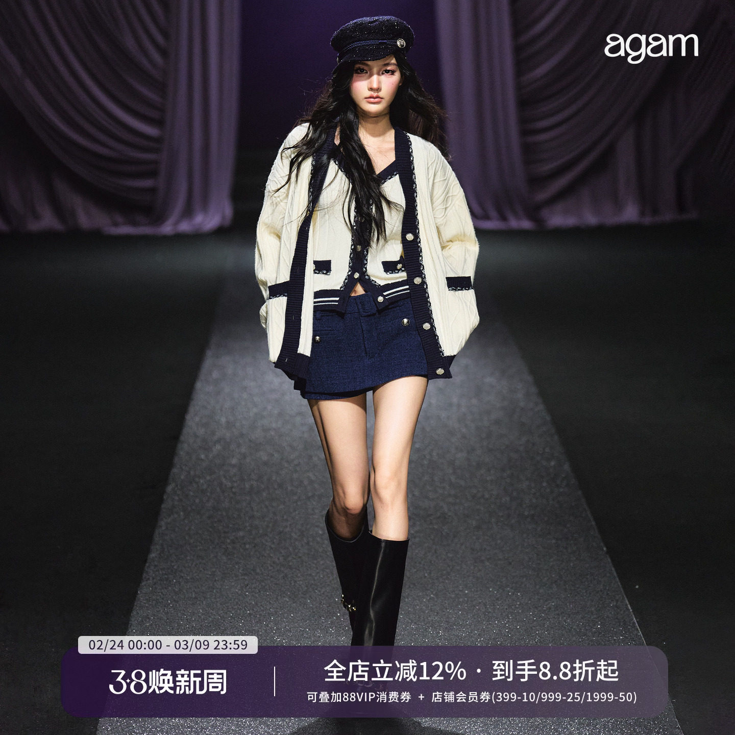 AGAM 软糯亲肤小香风撞色针织开衫女套装宽松高级感V领背心两件套