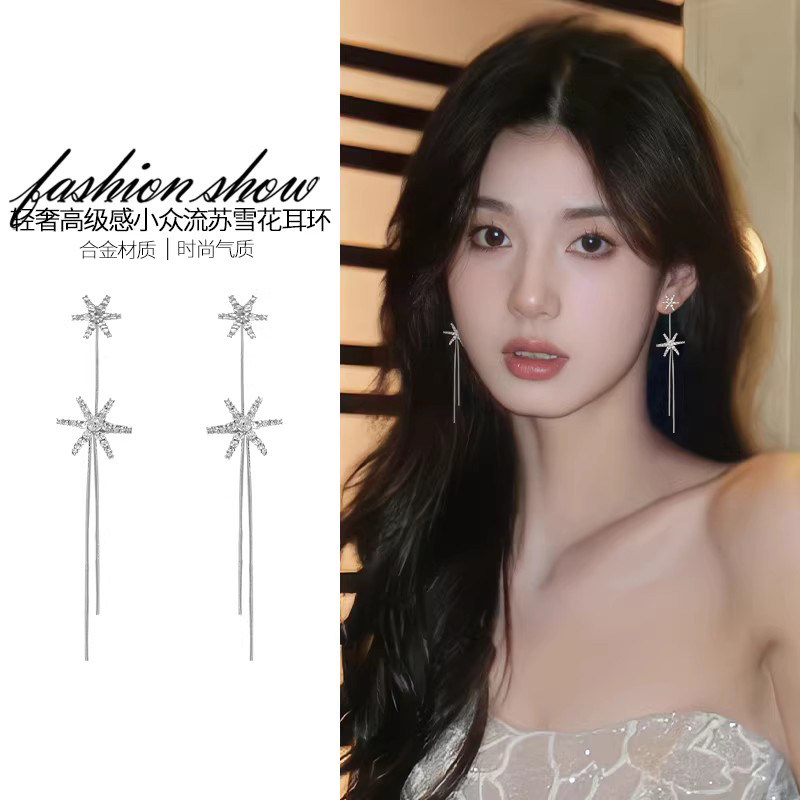 轻奢气质雪花流苏耳环女长款银色独特冷淡风耳钉耳坠设计高级耳饰
