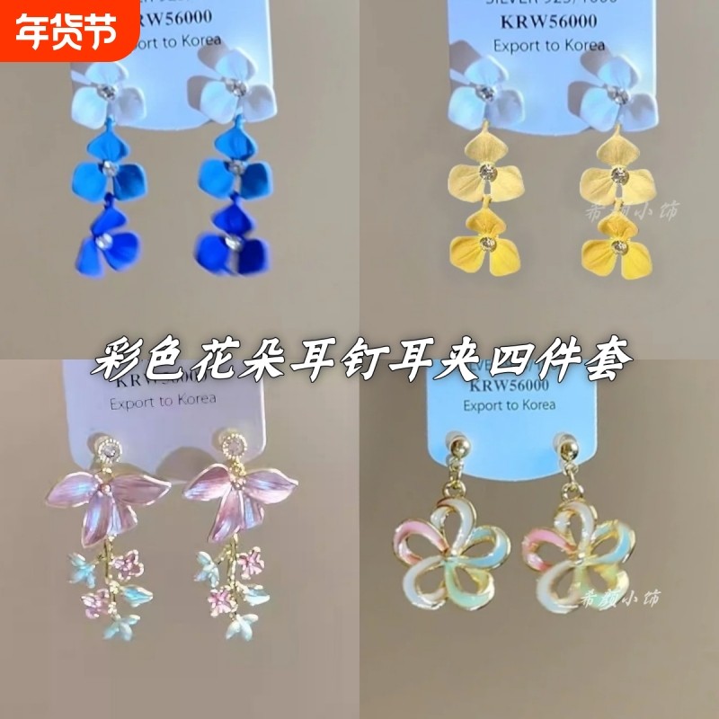 法式气质锆石流苏花朵耳环轻奢水晶花瓣长款耳坠名媛复古耳饰耳夹