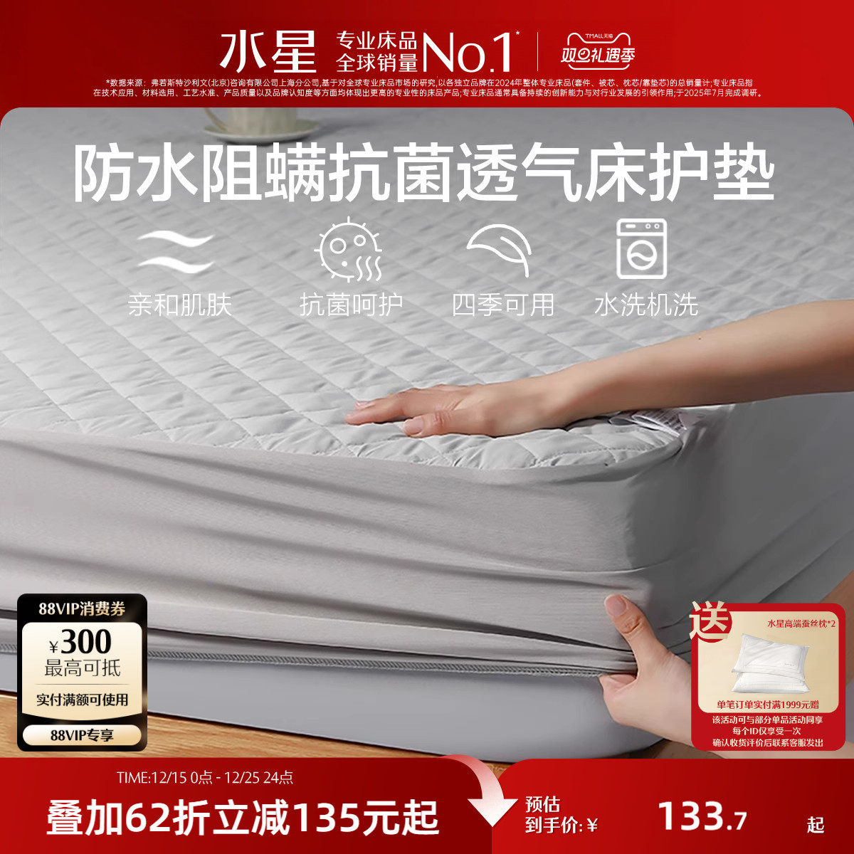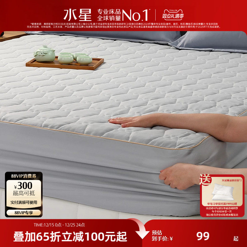 水星家纺抗菌防螨大豆纤维床护垫床笠家用软床垫保护套床罩防尘罩