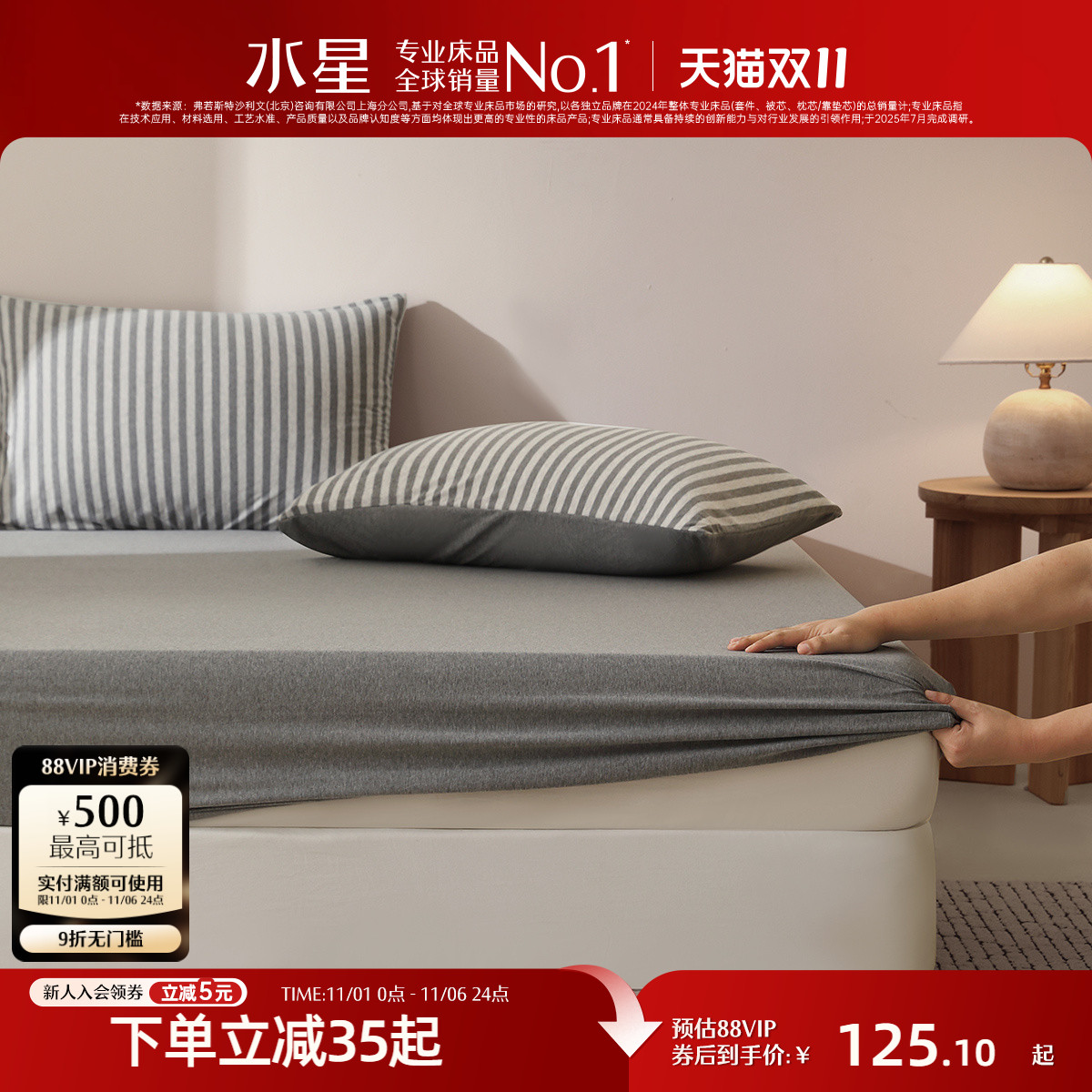 水星家纺针织棉床笠单件裸睡A类床垫保护套床罩全棉针织简约床品