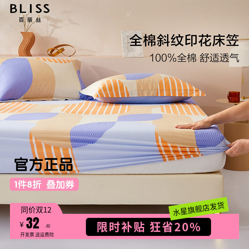 水星家纺出品百丽丝纯棉床笠单件床罩全棉防滑固定保护罩玩趣悦岛