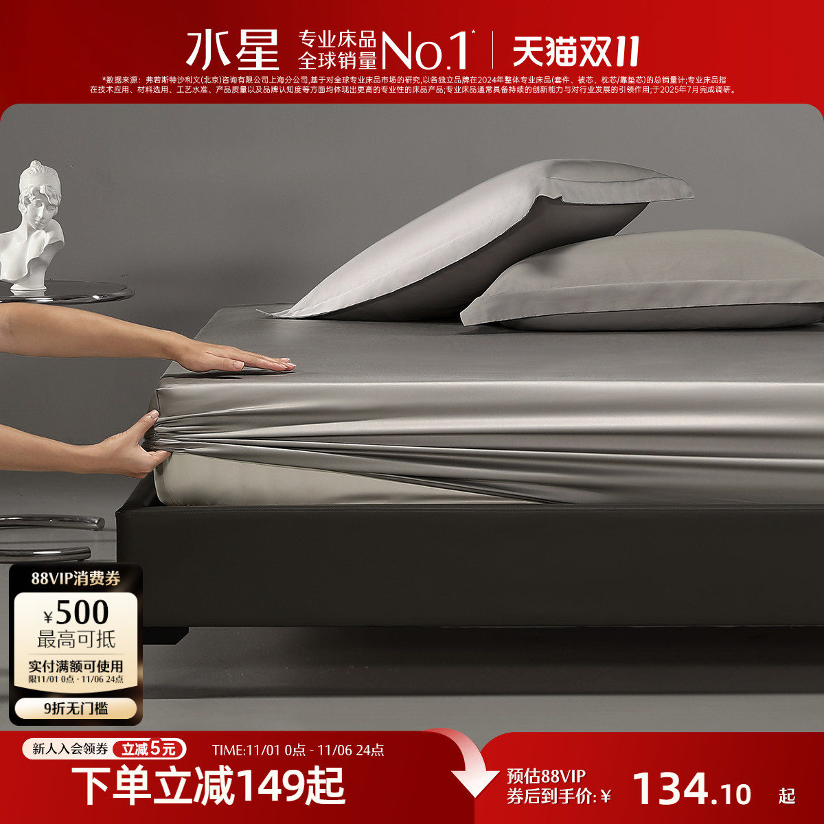 水星家纺床品裸睡A类100支长绒棉贡缎轻奢床笠高端床垫保护套床罩