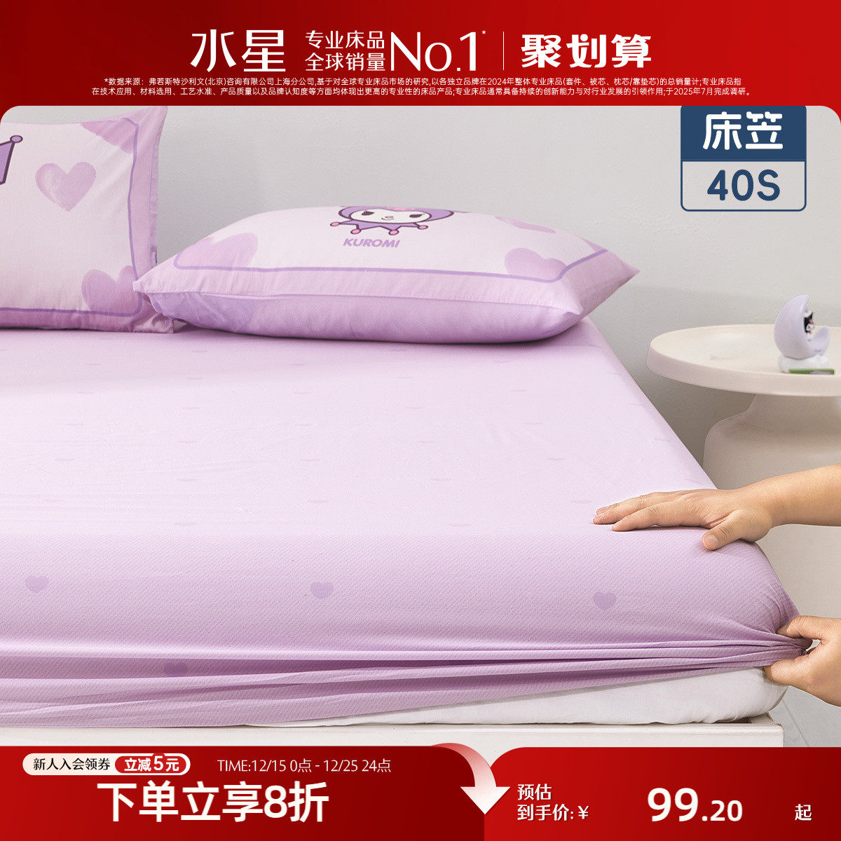 水星家纺60S长绒棉轻奢床笠全棉床罩新疆棉床垫保护套25新品床品
