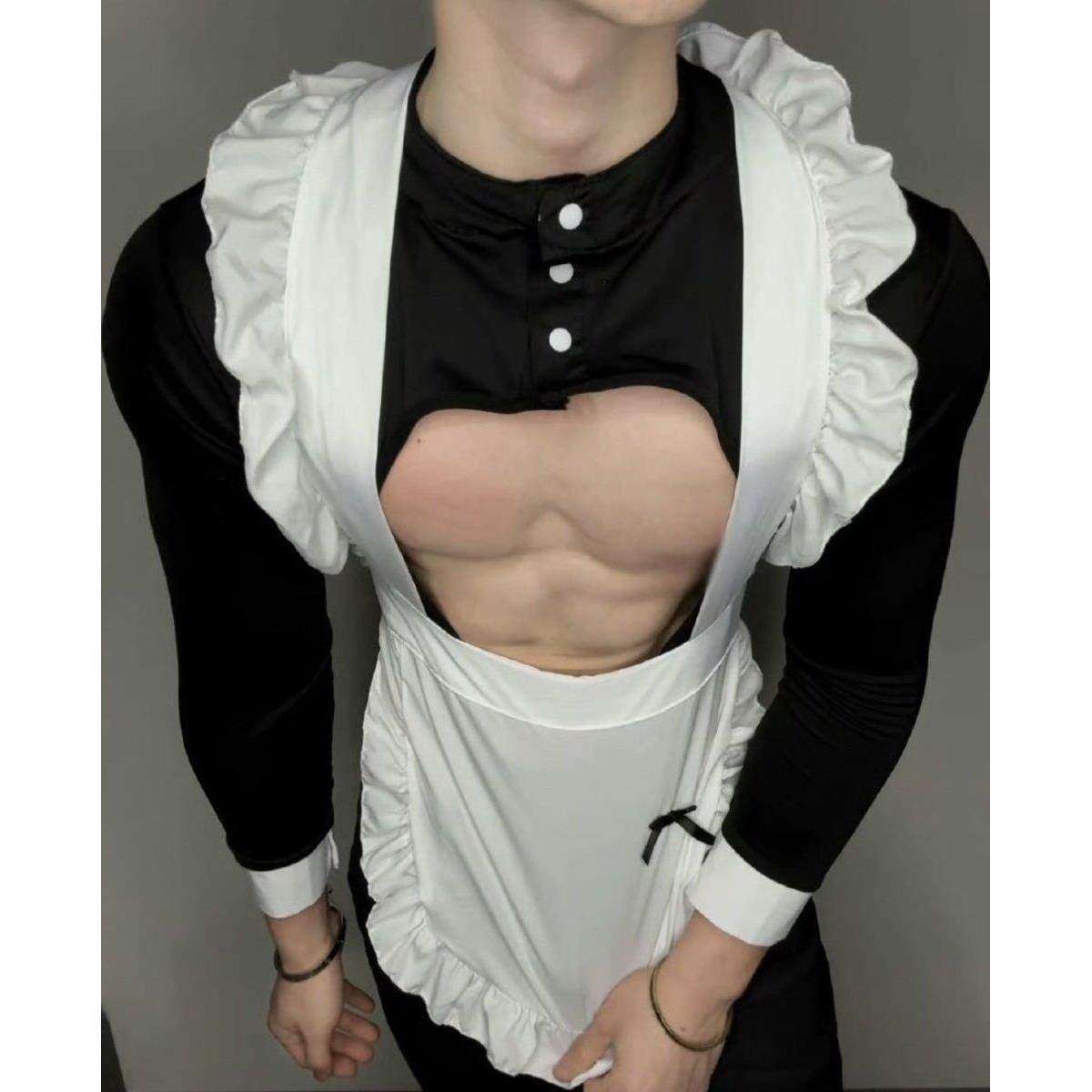 镂空三件套男仆装性感二次元可爱男佣人cos制服健身装肚兜男士