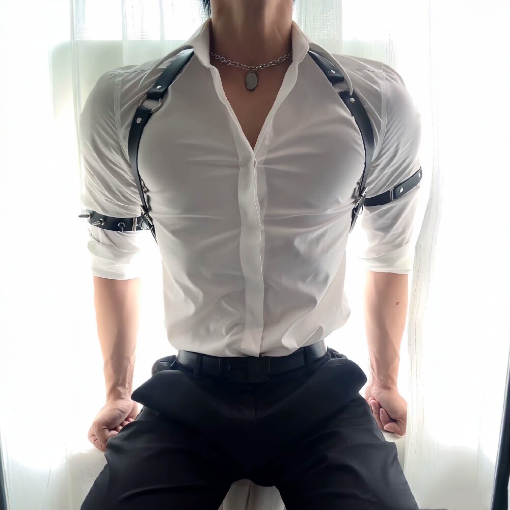 男生肩带体育生1M臂环铆钉项圈健身胸带肌肉男可调束缚背带三件套