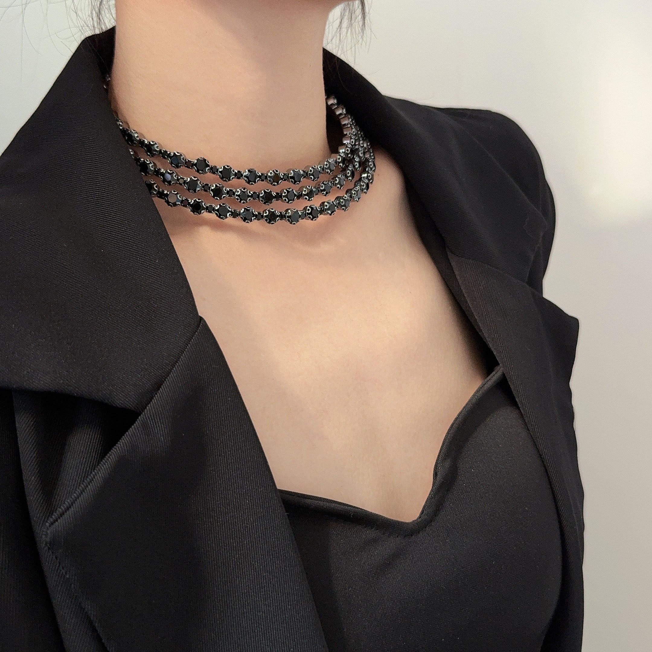 欧美风夸张重工黑色钻多层项链项圈女款轻奢小众高级感锁骨链颈链