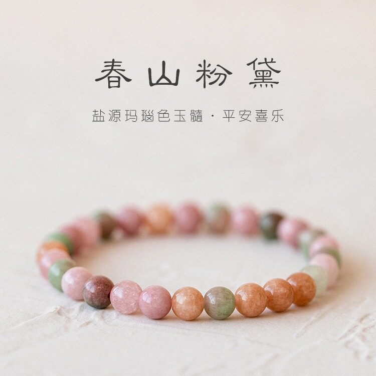 新中式温柔系彩色盐源玛瑙手串女古风手链清新复古甜美高颜值礼物