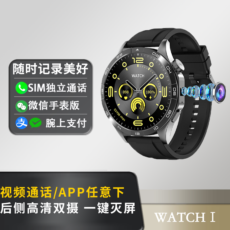 全新圆形表插卡智能手表高清大屏触摸屏高级心率血氧监控检测NFC摄像蓝牙监测健康