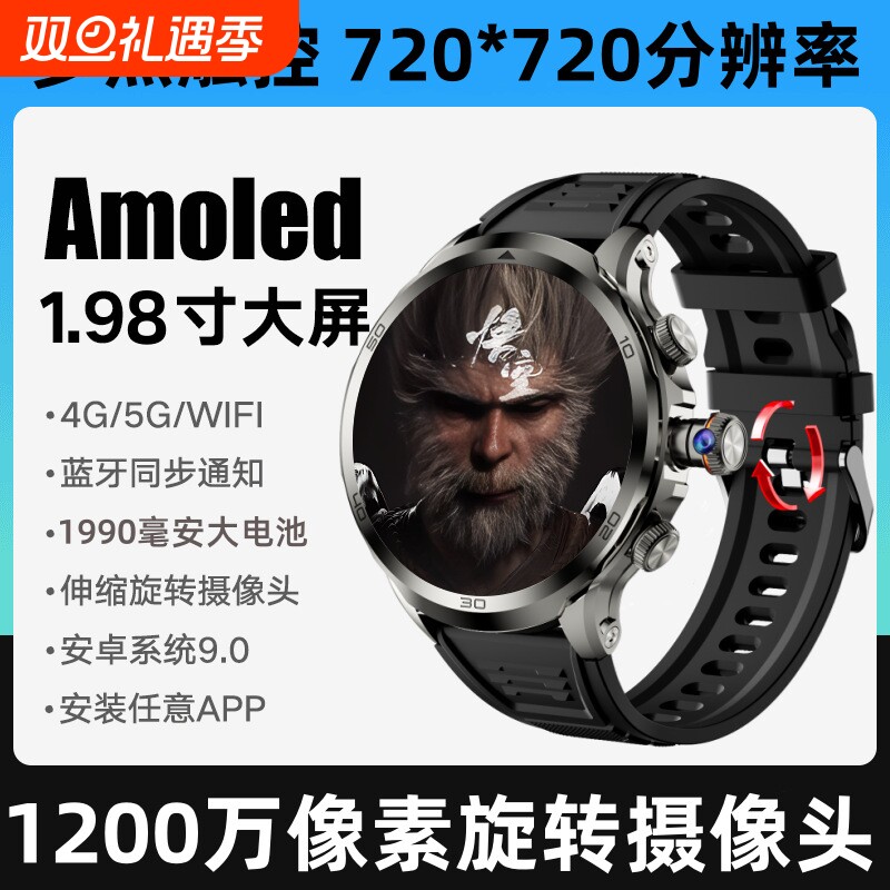【旋转摄像头】插卡智能手表高颜值APP下载视频拨打电话运动健康