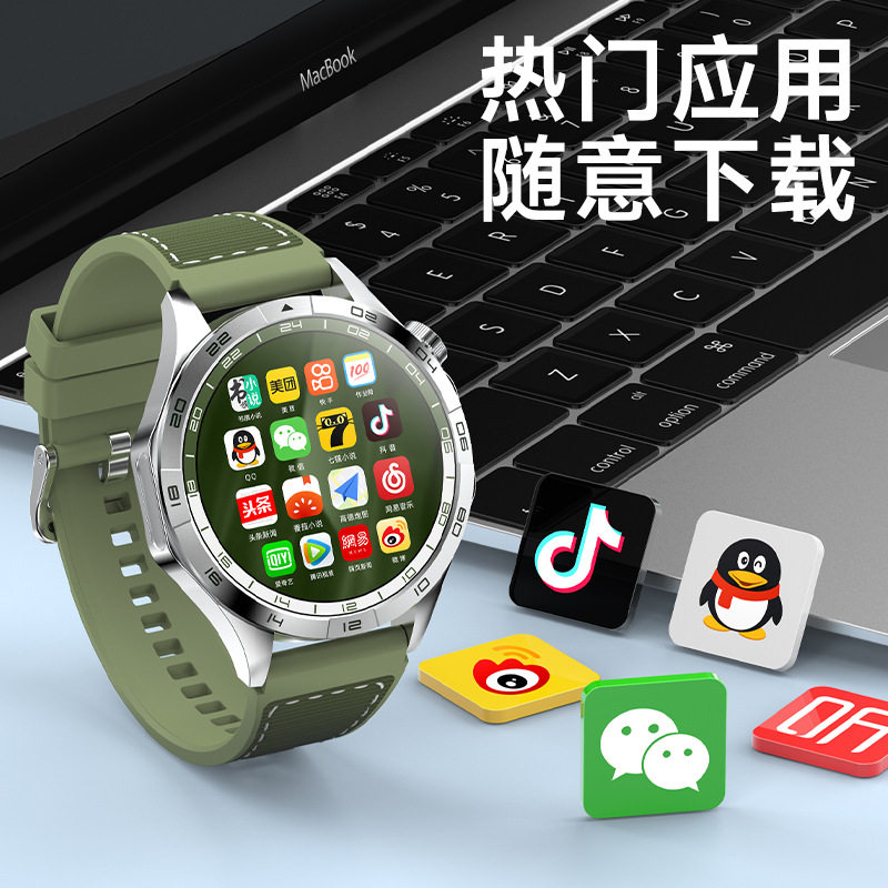 双系统【跨境国际专用】华强北超薄圆屏GT5插卡智能手表中國港澳臺视频APP下载WIFI上网学生专用成人男女款