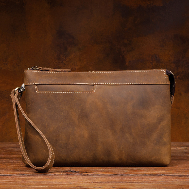 慢时光疯马皮商务手拿包文艺复古头层牛皮男士休闲手包轻便零钱包