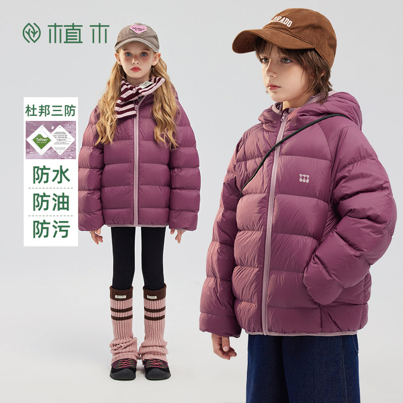 植木童装 儿童轻薄羽绒服 2025冬新款撞色中大童加厚男女童羽绒服