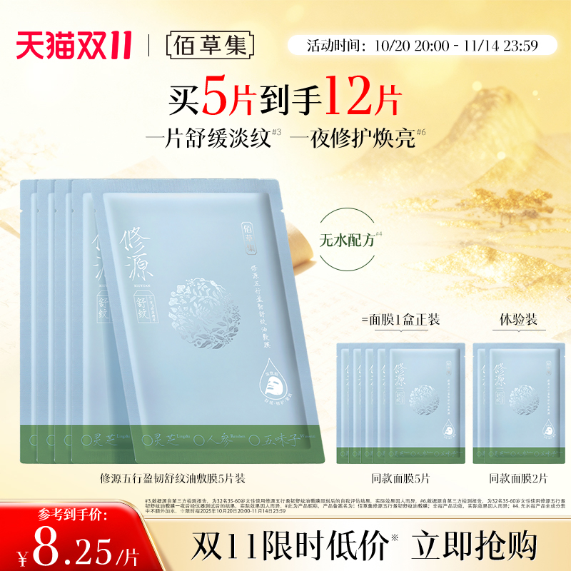 【百亿补贴】佰草集修源五行盈韧舒纹油敷膜补水保湿舒缓紧致面膜