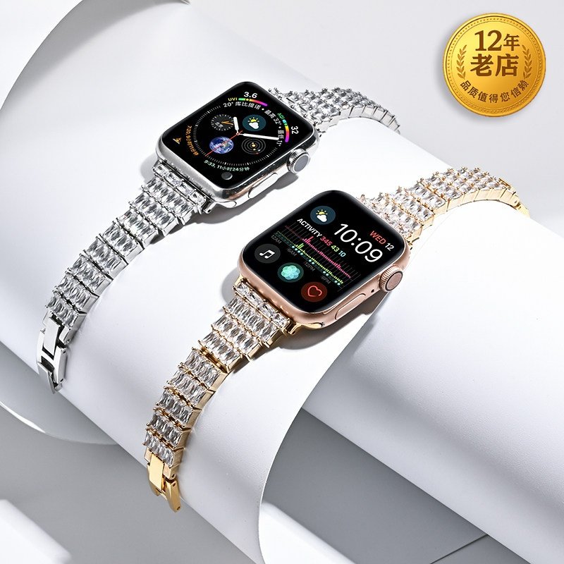 星图10代苹果apple watch23456se7s8锆石钻表带金属壳边框40/44/42mm珍珠45iwatch潮女小香风保护外壳ultra49