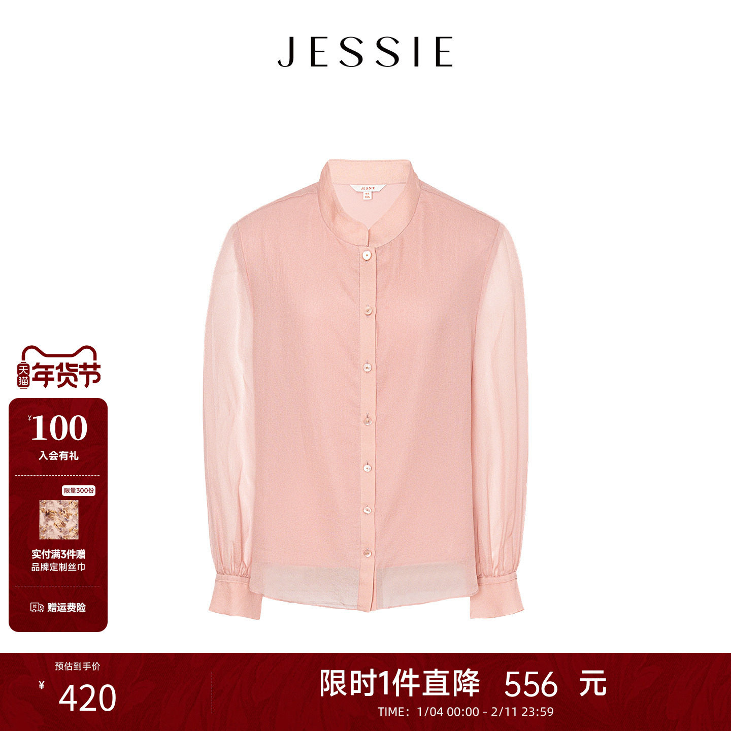 【商场同款】JESSIE2025年秋季新款优雅纯色衬衫女式透气长袖立领