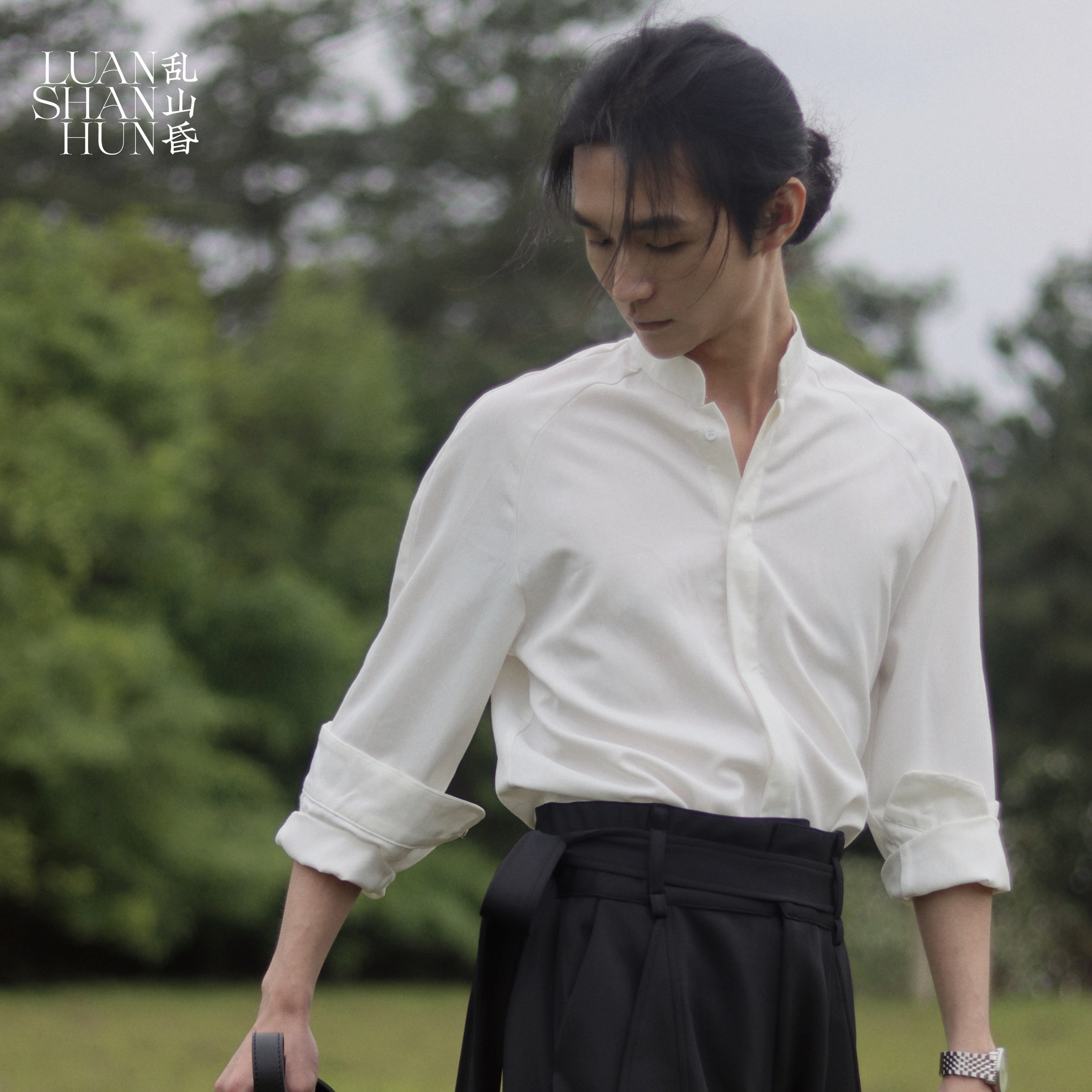 南乙NYHSUGOO 春季新中式长袖衬衫男女纯色立领简约百搭衬衣3470