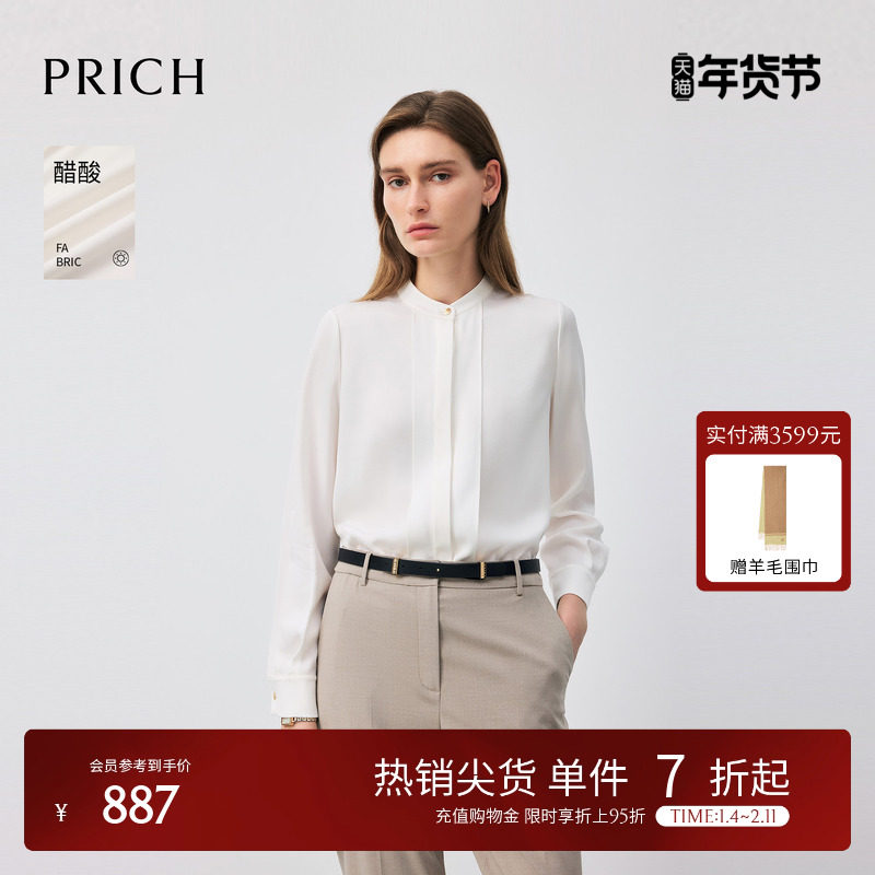 【醋酸】PRICH简约纯色立领衬衫2025冬季新款宽松气质垂坠上衣女