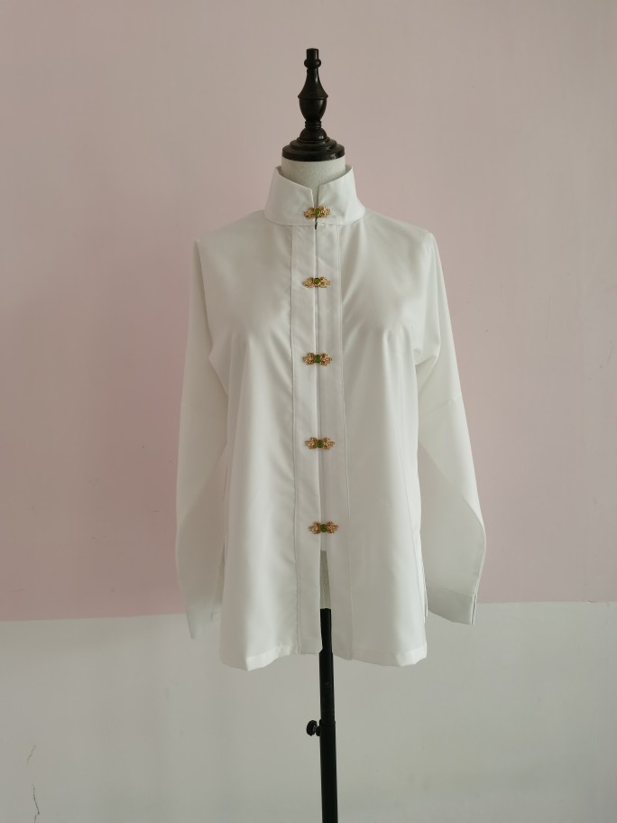 婉甸2025年冬季新品漂白中式长袖衬衫纯色立领女衬衣1244S01DM1