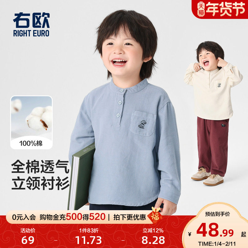 右欧男童女童立领衬衫纯色儿童衬衣学院风小狗春秋季新款时髦童装