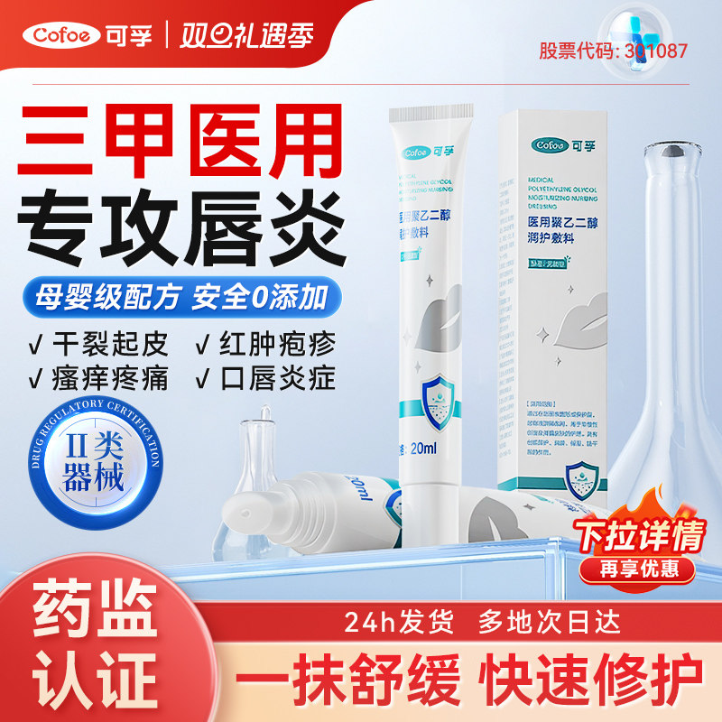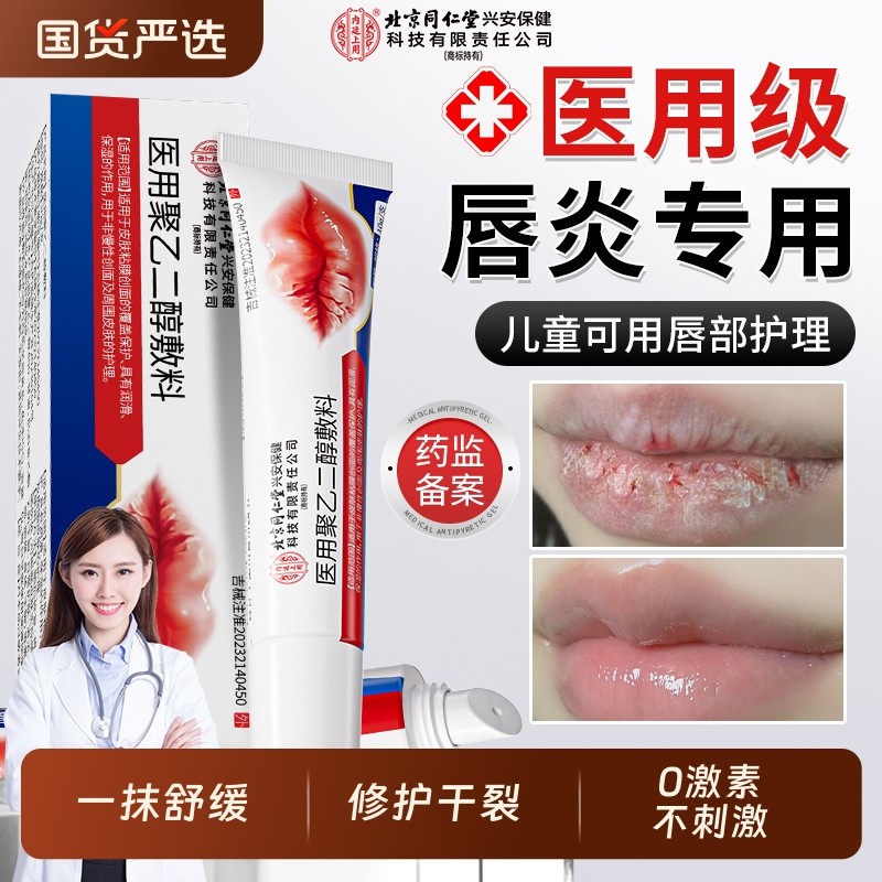 医用聚乙二醇唇膜唇炎修护敷料嘴唇干裂脱皮保湿死皮口角炎药唇膏