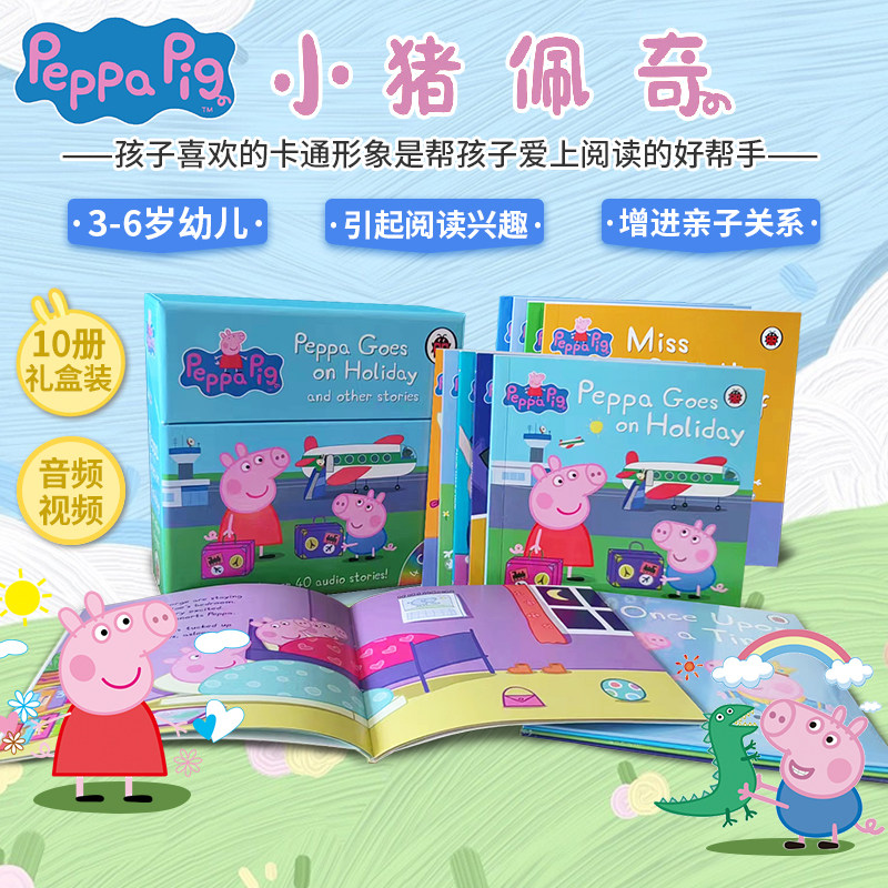 Peppa Pig小猪佩奇绘本粉红猪小妹全10册1-3岁孩子早教书籍中英文双语儿童英语启蒙宝宝阅读中文版原版幼儿图书宝宝睡前故事书4