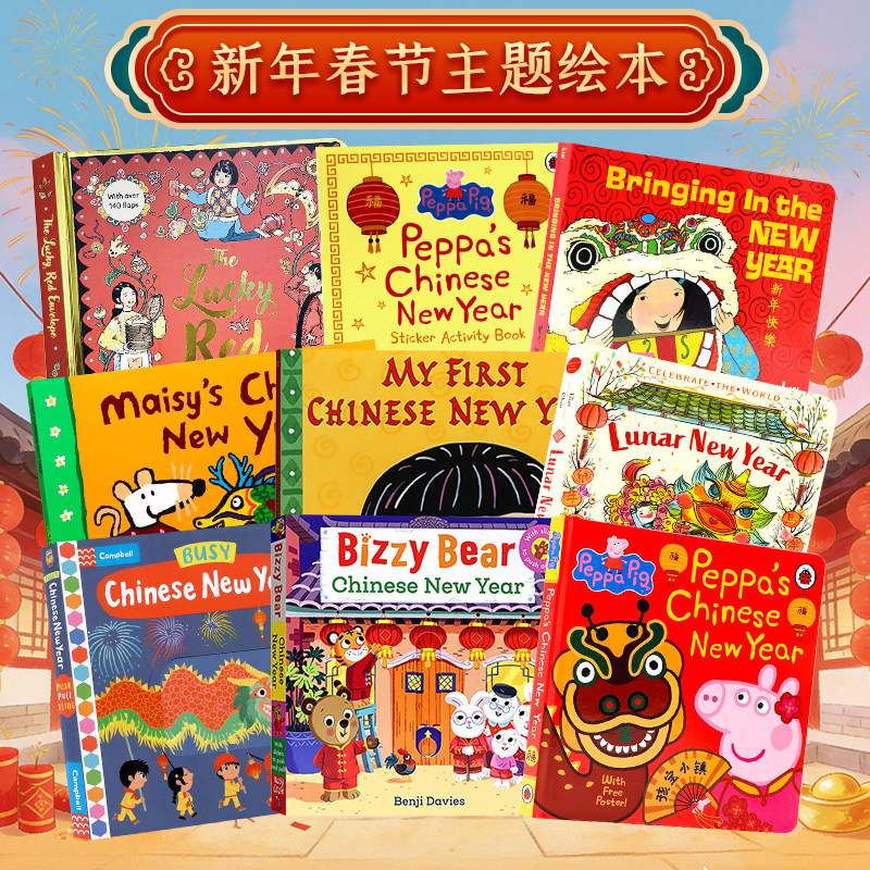 新年春节绘本 Chinese new year 中国新年春节主题 Peppa Pig 佩奇新年英文原版绘本中秋端午纸板书 dragon dance传统节日文化启蒙