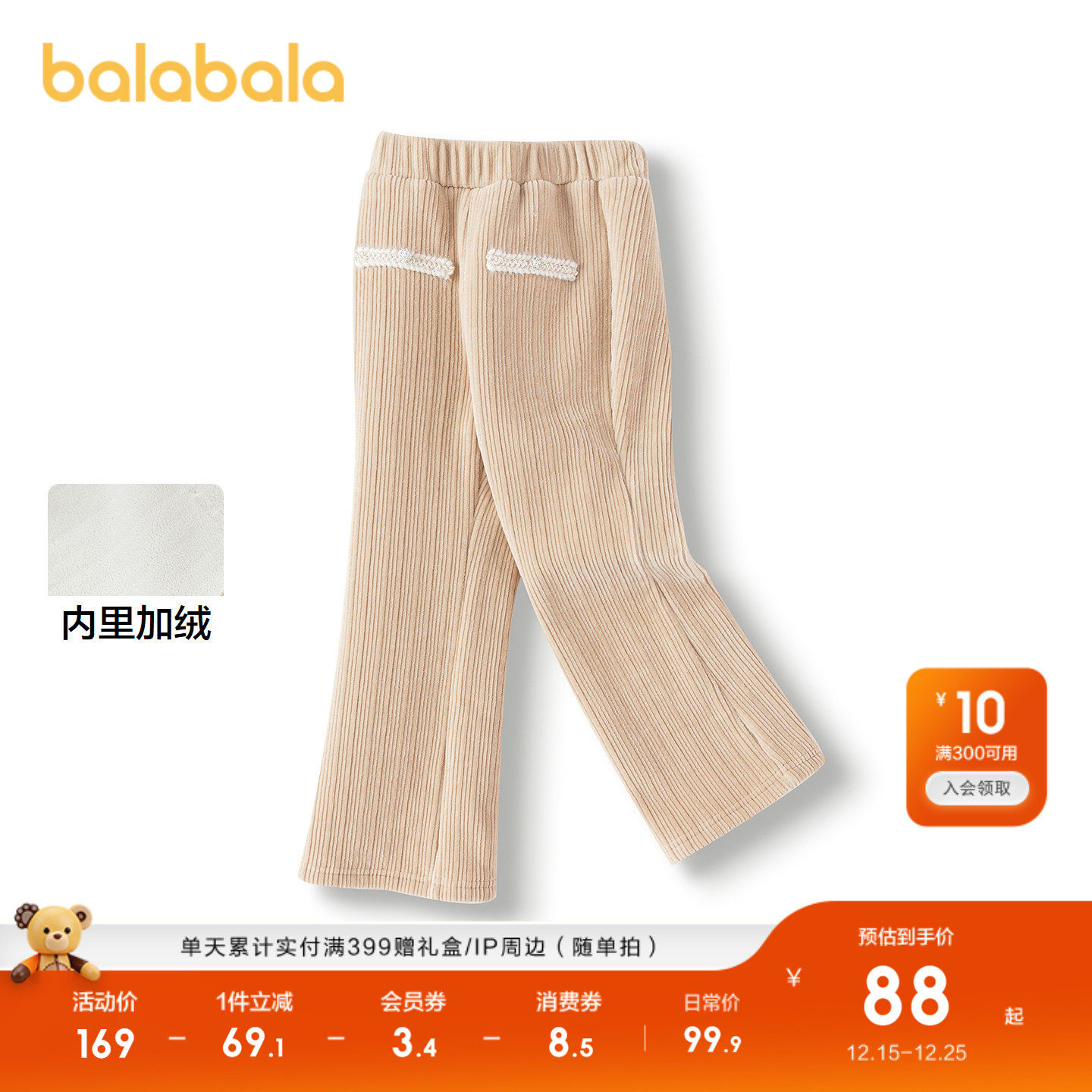 巴拉巴拉童装儿童长裤女童冬季小香风喇叭加绒裤保暖休闲舒适洋气