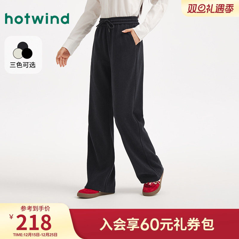 热风女士卫裤直筒宽松长裤2025年冬季新款肌理直筒裤松紧腰长裤
