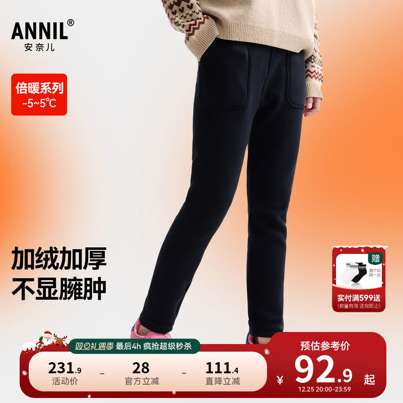 安奈儿童装女童针织打底夹裤2025冬季新款加绒加厚保暖修身长裤
