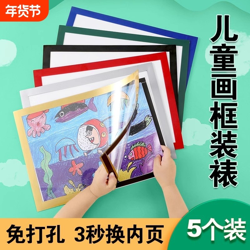 儿童磁吸画框装裱相框挂墙外框a3a4展示框墙贴奖状框免打孔上墙