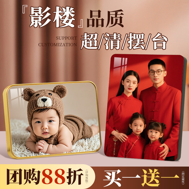 儿童照片定制水晶摆台打印九宫格相框挂墙宝宝相片制作摆件高级感