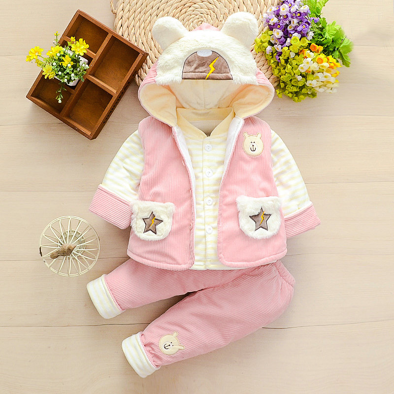全棉秋冬装0-1-2-3岁半女宝宝衣服冬天婴儿童棉衣套装男童装三件