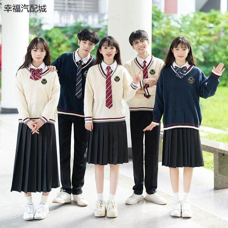 韩版初中学生毛衣校服套装学院风秋冬季高中班服运动会合唱演出服