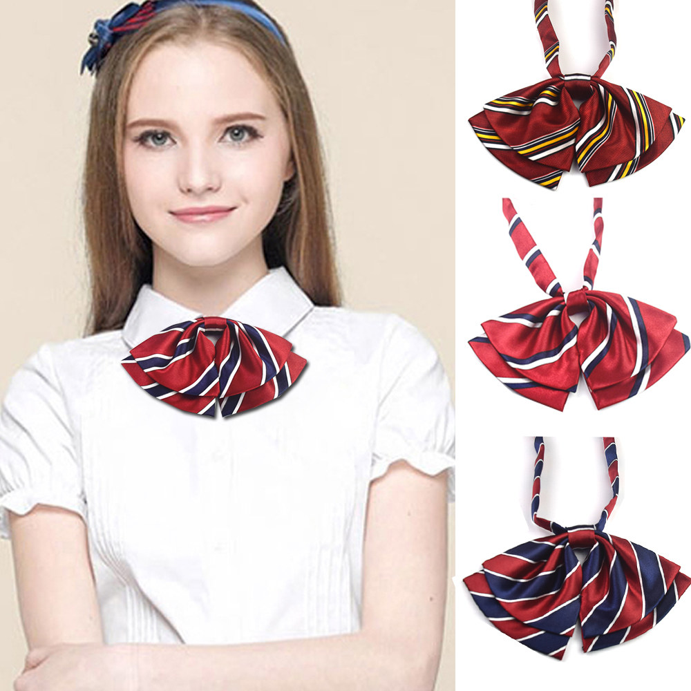 韩版校服酒红色条纹领花领带女生蝴蝶结印花仿真丝团体合唱酒红色