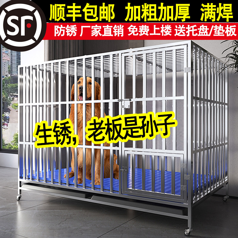 狗笼子不锈钢大中型犬带厕所家用室内外金毛拉布拉多宠物用品狗屋