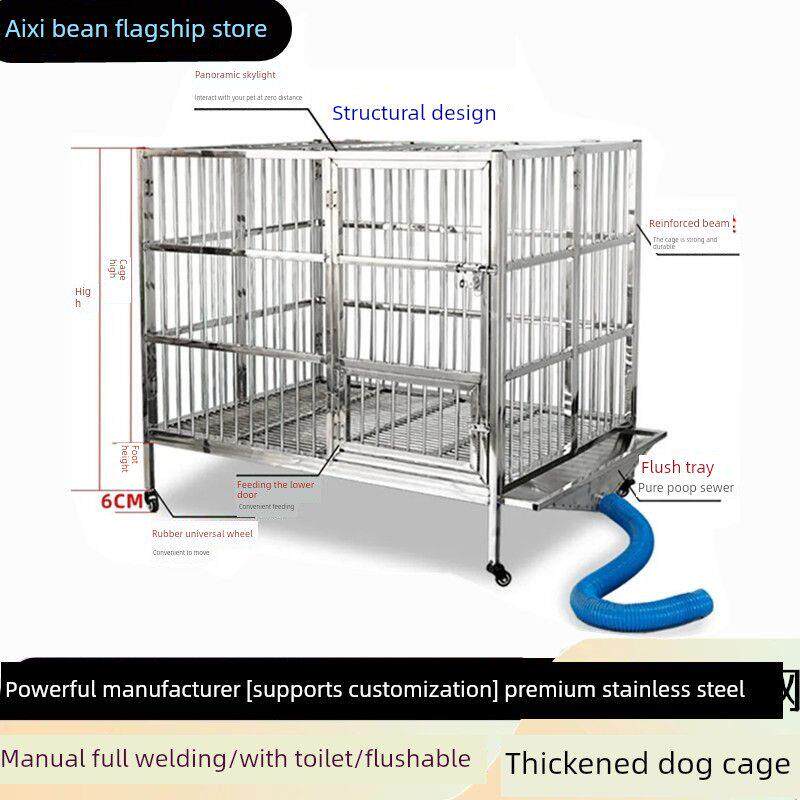 不锈钢狗笼与厕所漏斗冲洗狗笼金毛猎犬拉布拉多中型和大型狗家户