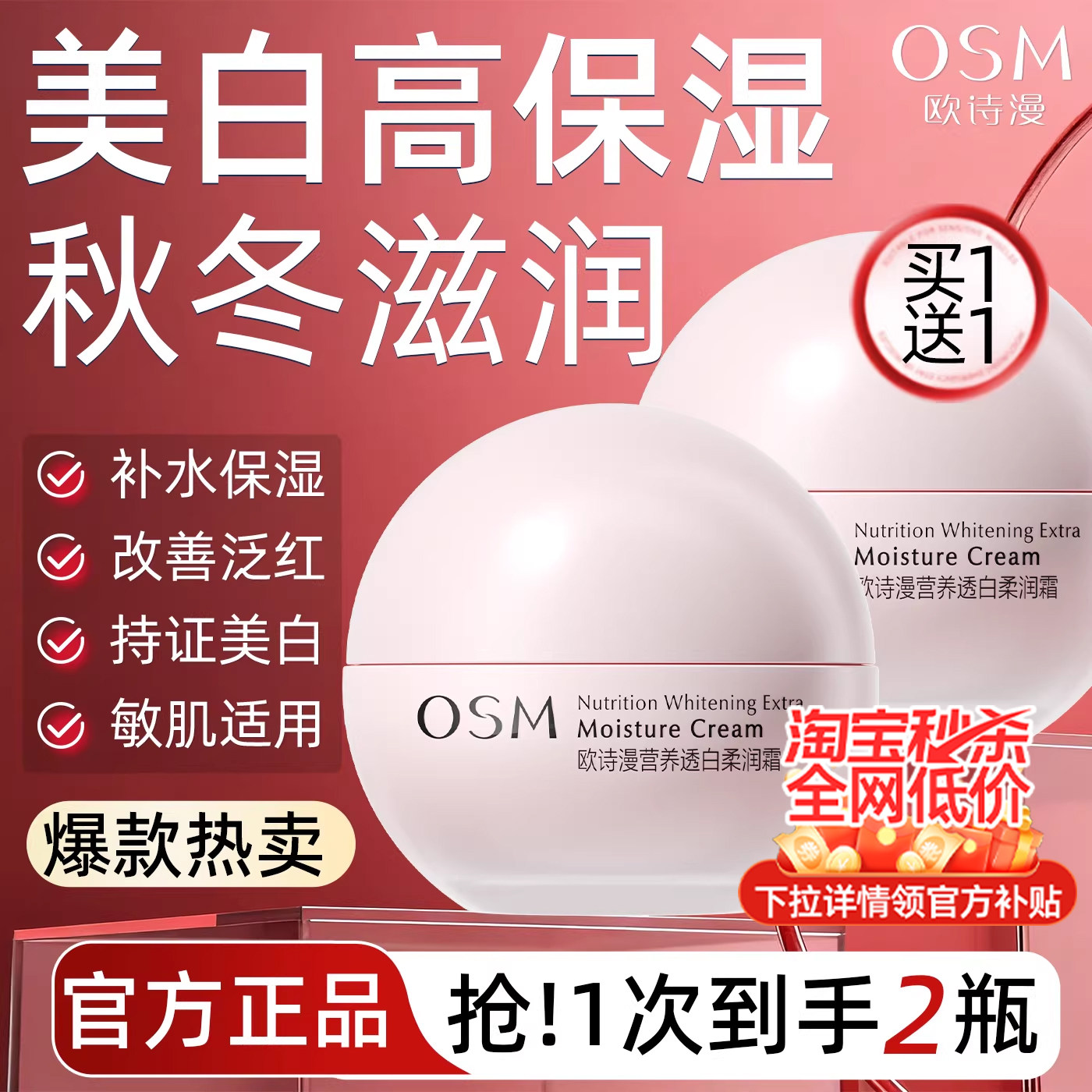 欧诗漫美白淡斑面霜提亮去黄柔嫩霜补水保湿秋冬旗舰店官网正品女
