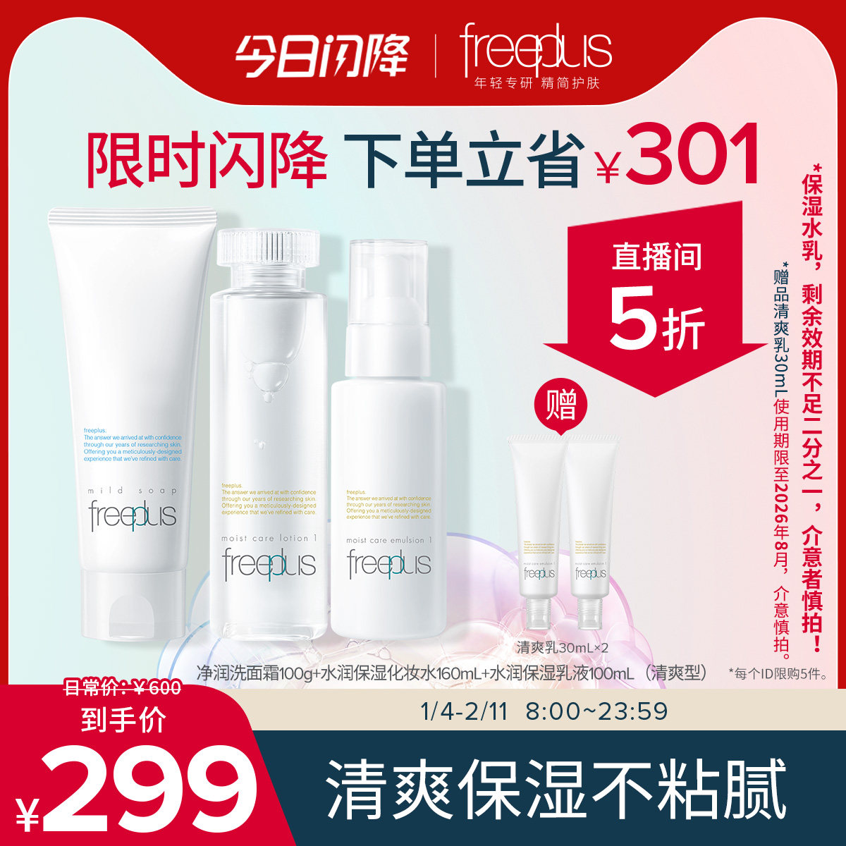 【下拉领淘金币优惠】Freeplus/芙丽芳丝保湿修护清爽乳液补水