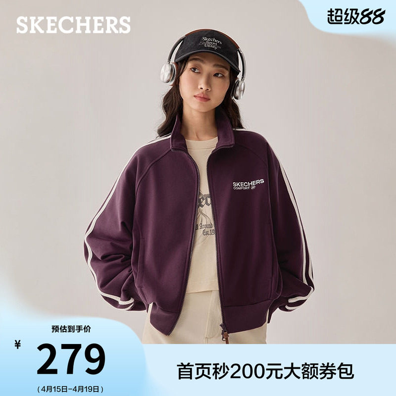 斯凯奇短款针织外套立领棒球服夹克夏季女流行时尚运动休闲小个子